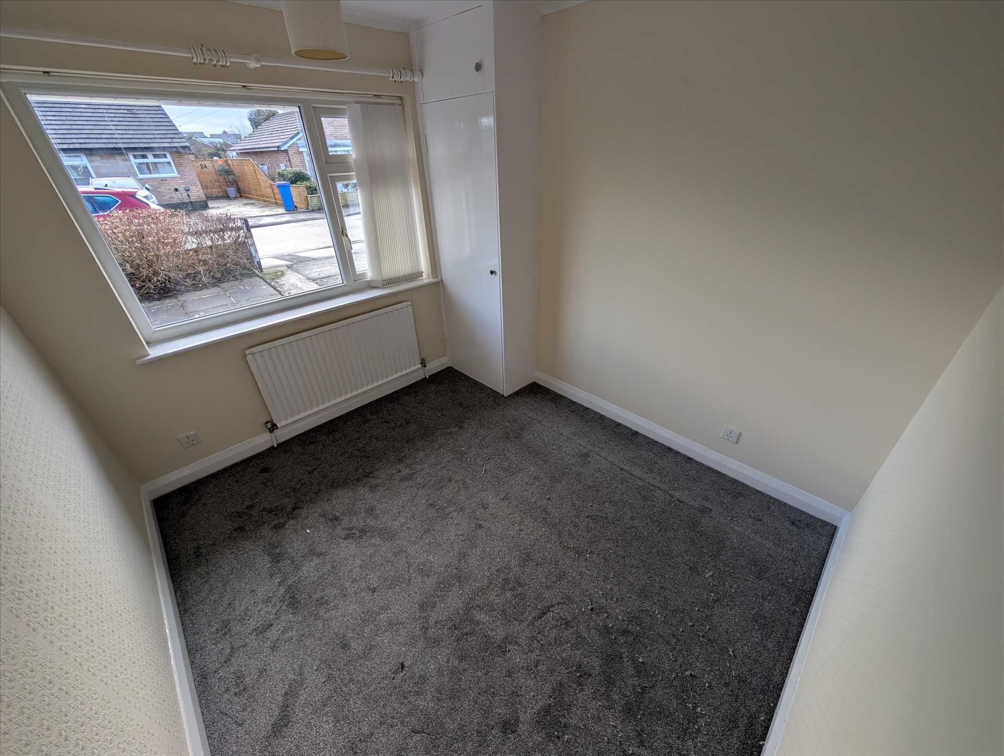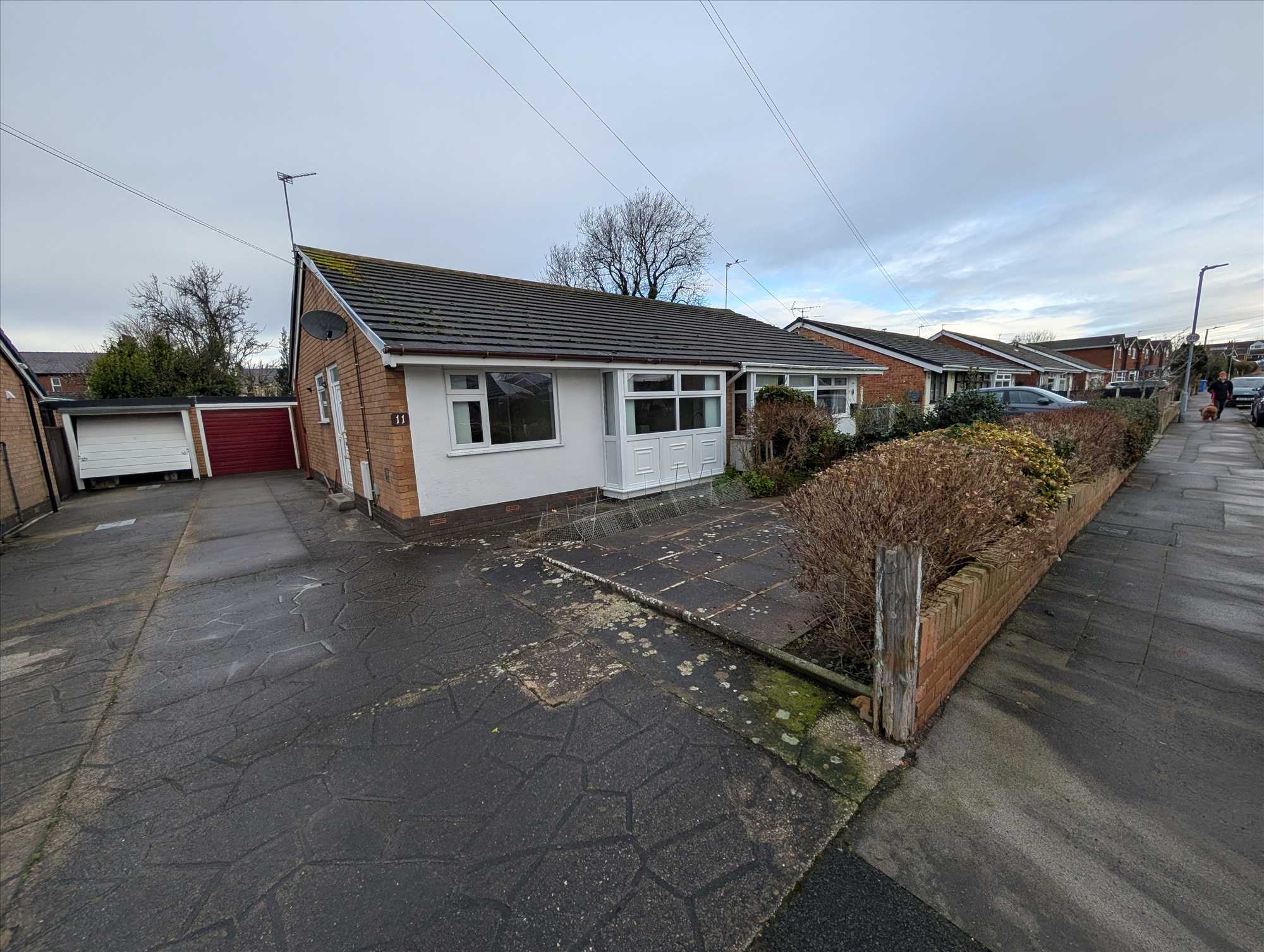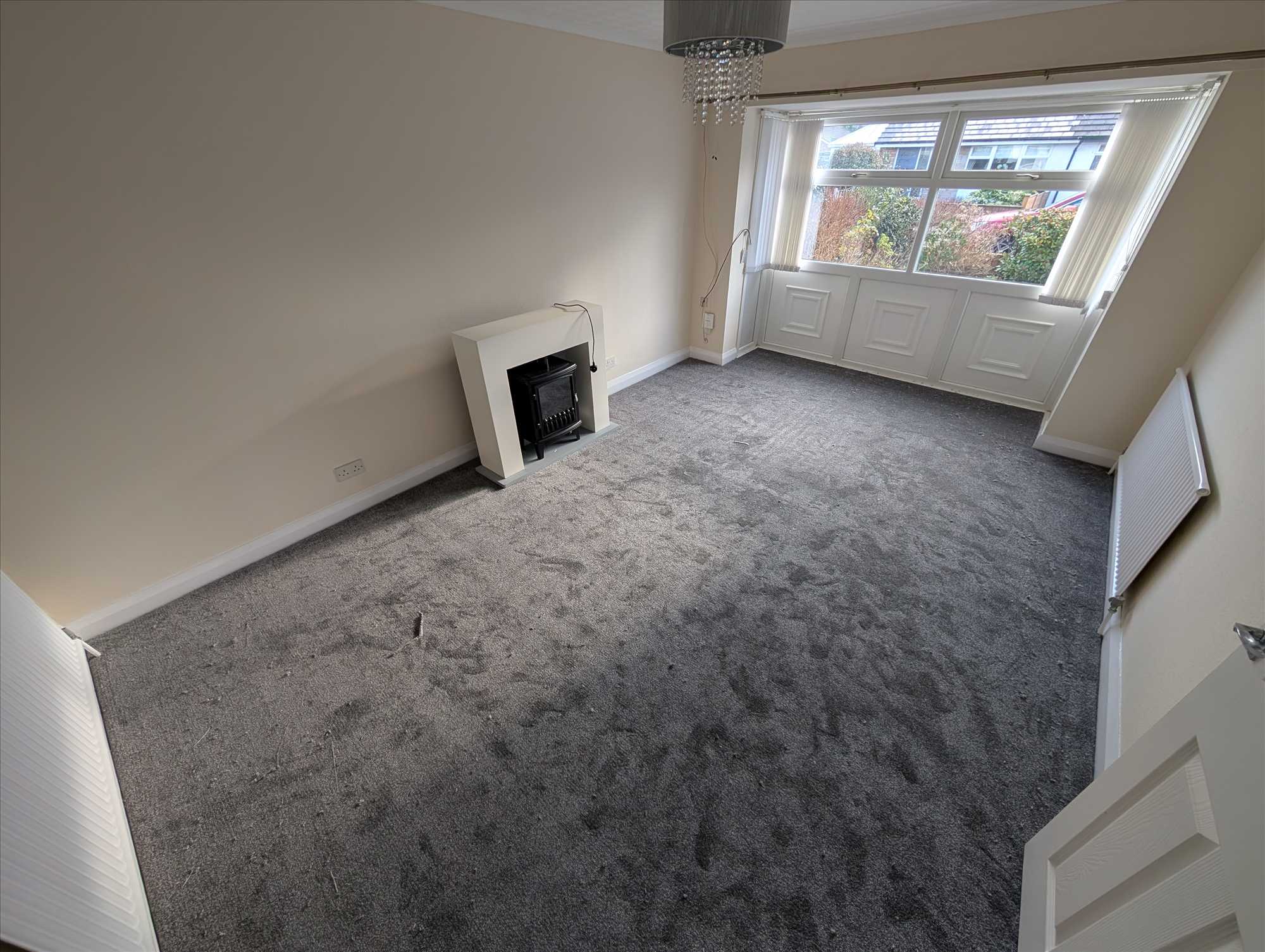 A lovely semi-detached true bungalow with off road parking, garage and a short walk to local shops & pub. Hallway entrance with storage cupboard. Spacious lounge to front of property with modern electric fire. Fitted kitchen with integral electric oven, hob & small fridge freezer. Kitchen has door to rear garden. Two double bedrooms with master bedroom having fitted wardrobes. White three piece bathroom with shower over bath. Easy low maintenance gardens to front and rear. Garage and off road parking for several cars. Gas centrally heated and double glazed.