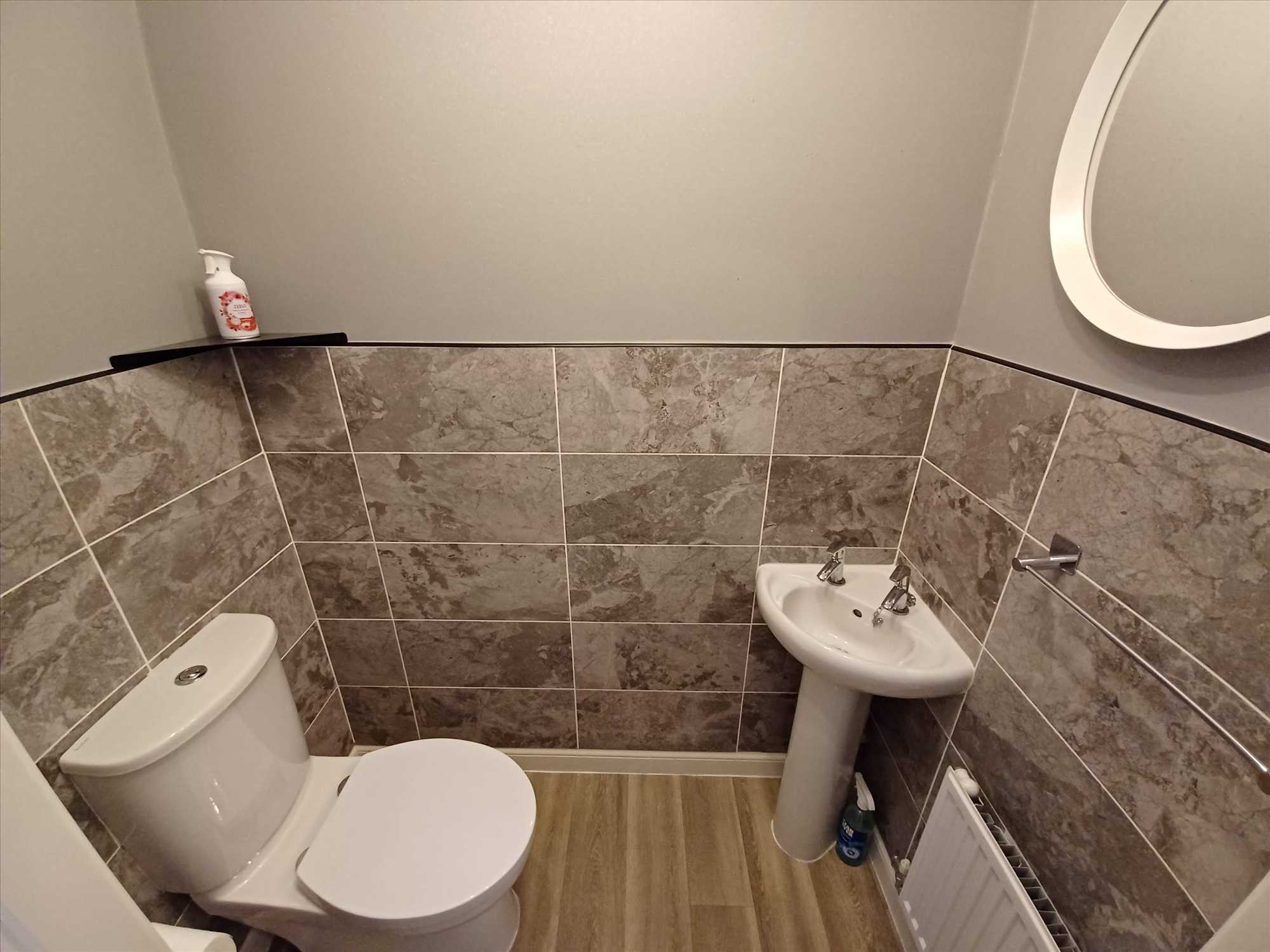 A very well presented 3 bed mid-terraced house with garden and allocated parking for 2 cars. Hallway with ground floor WC. Newly fitted breakfast kitchen with breakfast bar, electric oven and gas hob. Space for other appliances. Spacious lounge with patio doors to the rear garden & a large understairs storage cupboard. 3 beds to the 1st floor with the master having a 3 piece ensuite shower room and fitted wardrobe. 3 Piece family bathroom. South easterly facing garden which has artificial lawn and storage shed. Rear gate for access to the parking area.