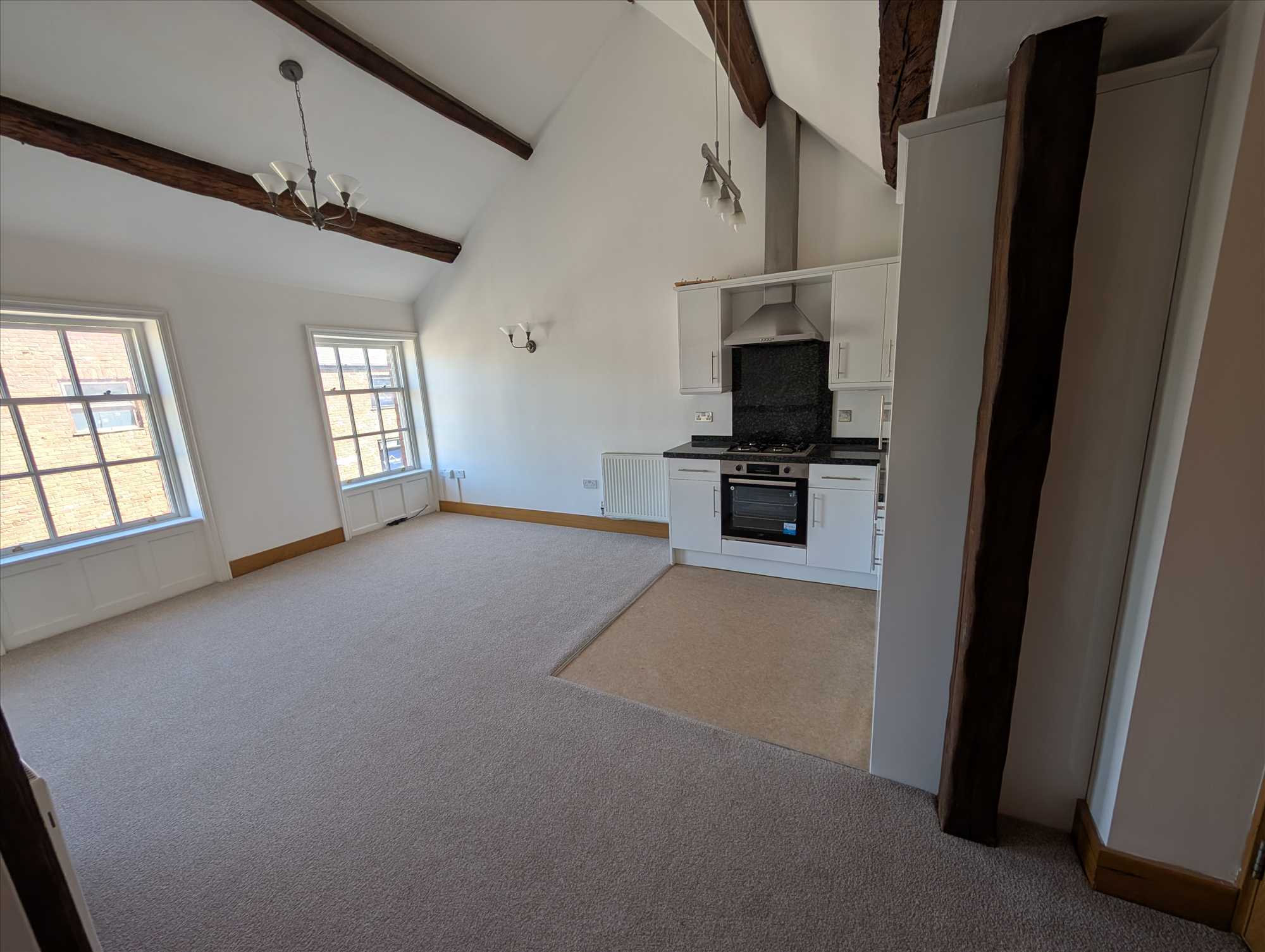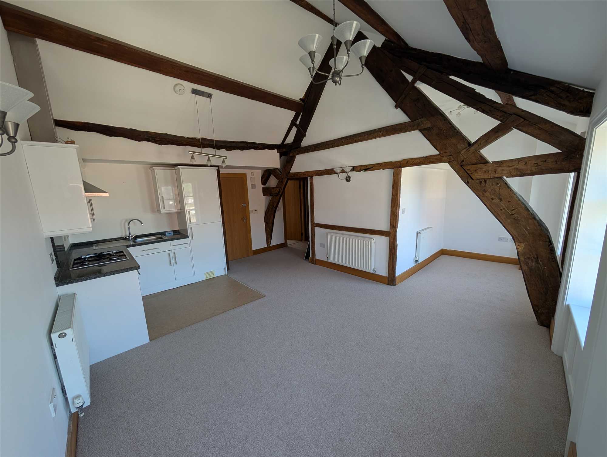 Individually designed one bedroomed apartment in the centre of Poulton overlooking the square with car parking to the rear. A second floor listed apartment with many charming features in the centre of Poulton. Security code entrance. Spacious lounge with beamed ceiling. Modern fitted kitchen in white with appliances. Small dining area off lounge. Large double bedroom. Modern bathroom suite with over bath shower. Parking space to the rear. Gas Central Heating.